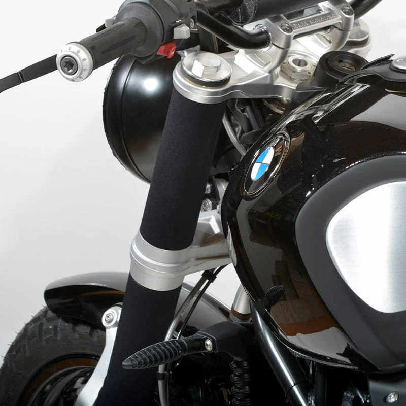 Queste 4 protezioni in tubo di neoprene con velcro consentono di salvaguardare i foderi forcella e rendono la forcella della nineT di colore nero in maniera semplice ed economica . Si montano in pochi minuti e non è necessario smontare la forcella. Il risultato è fantastico!